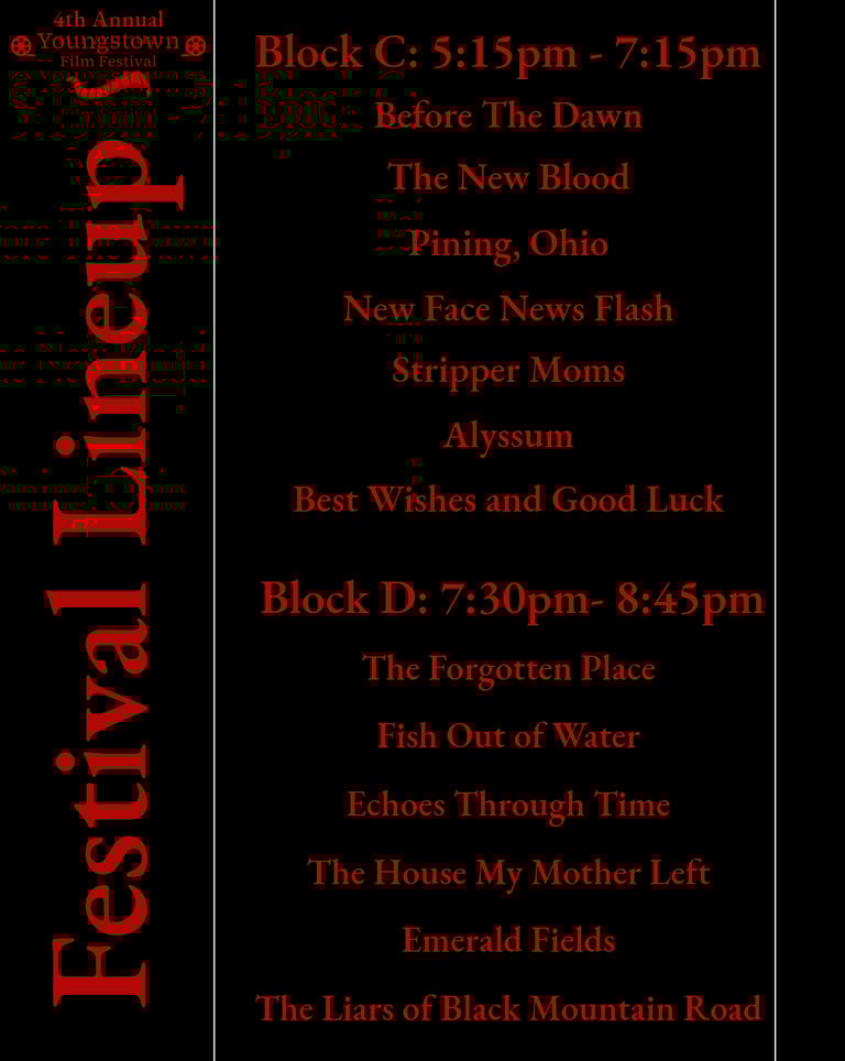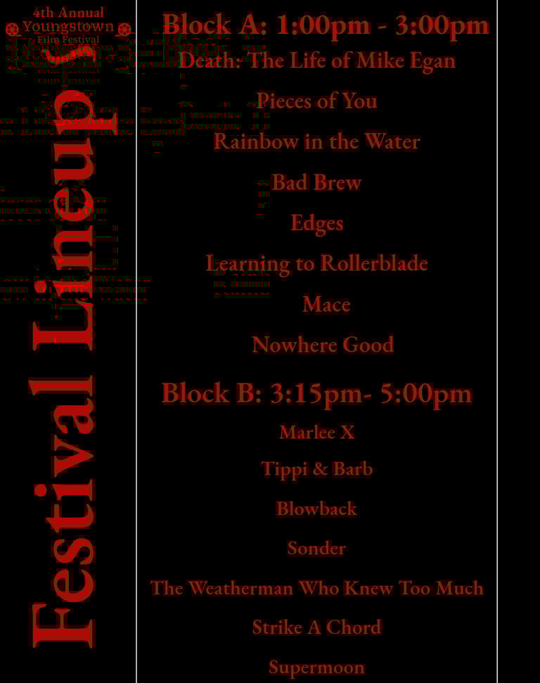 12:30pm - Head into theater and begin festival
